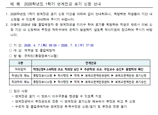 fnctId=bbs,fnctNo=370 연계전공 포기 신청안내 글번호 421162 작성일 2026-03-16 수정일 2026-03-16 작성자 임베디드시스템공학과 (032-835-8760) 조회수 185 첨부파일 첨부파일이(가) 없습니다. 목록